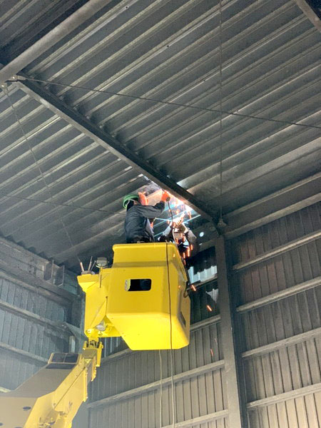 工場の天井クレーンの取付けをアイビームから取付けをおこないました。