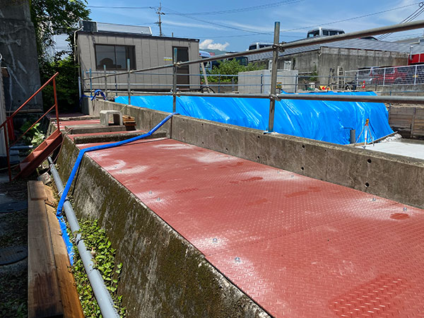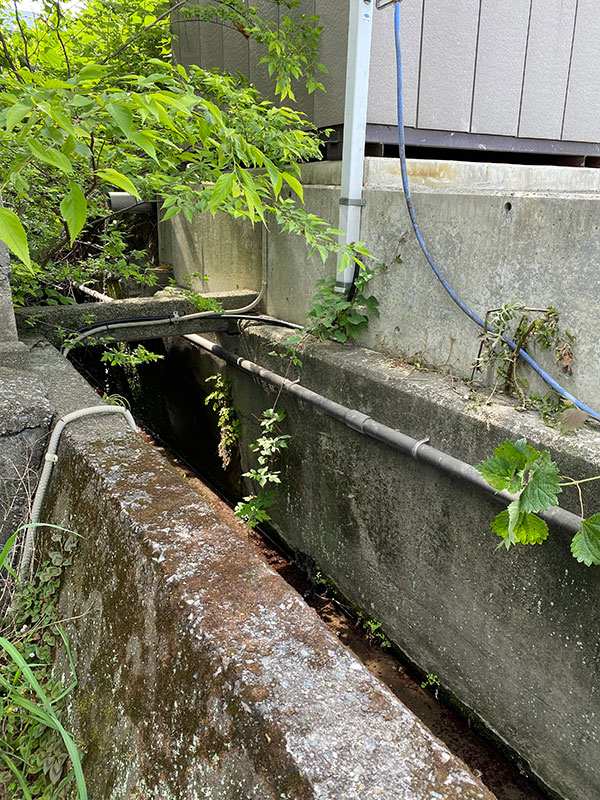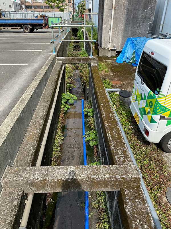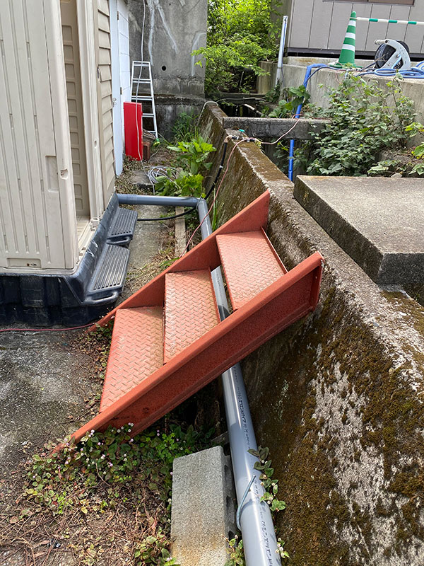 この溝に人が墜落する危険があるため鉄板をはらさせていただきました。
