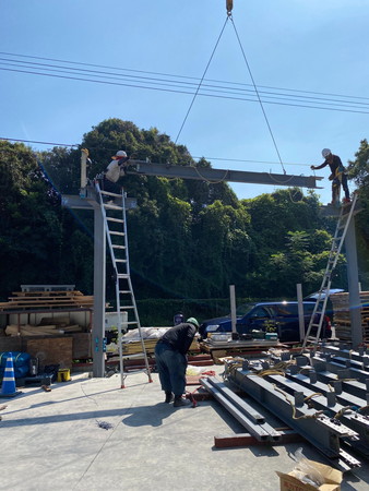 某 会社の資材置き場鉄骨製作建て方