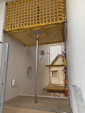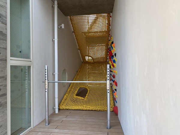 ネット業者さん、ボルダリング業者さんと協力して遊べるこども園が完成です。