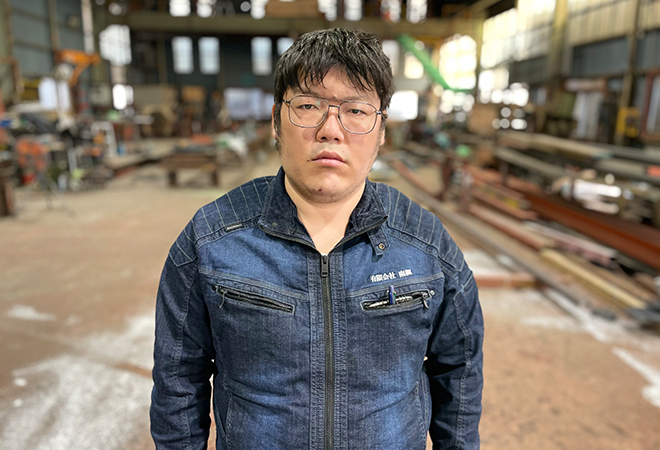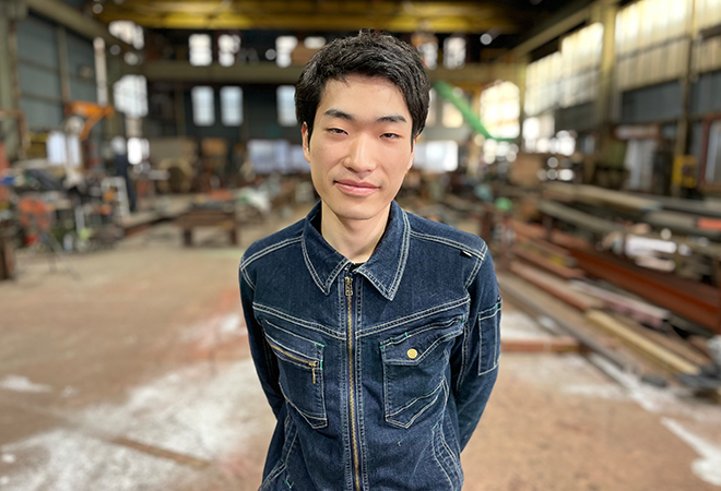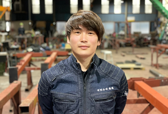 | 意気込み | 技術力の高い先輩方がたくさんいるので製作、溶接、現場作業は教えてもらいながら率先してトライさせてもらっています。 階段や手摺を製作するのが楽しいです。 綺麗な製品を製作、安全作業での取付を日々心がけています。 |